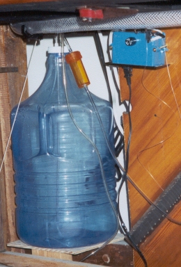 the 3 gallon resevoir jug and pushes water down its hose to the sump. I also hooked a small red